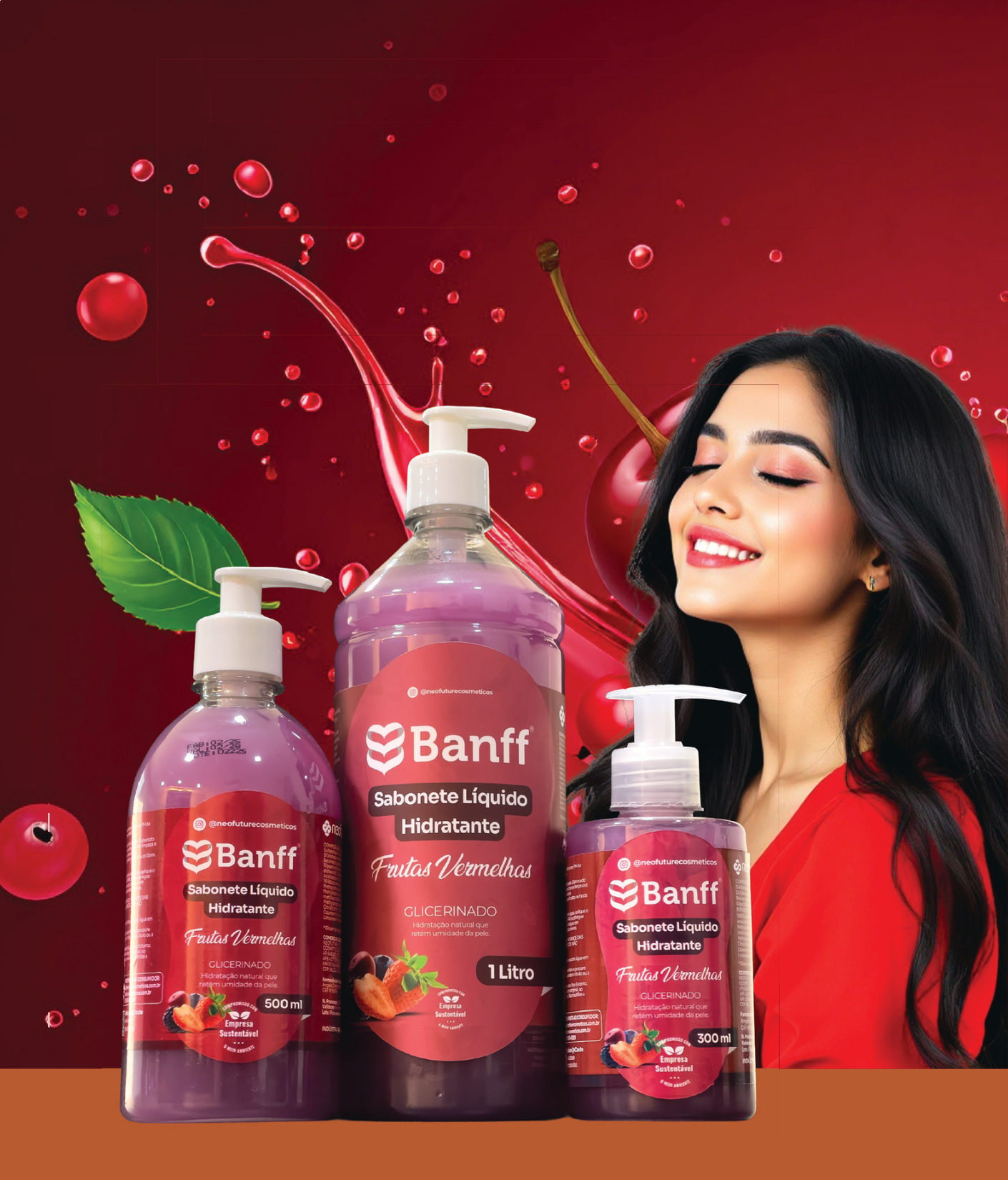 O sabonete líquido de Frutas Vermelhas combina o poder das frutas mais intensas em uma